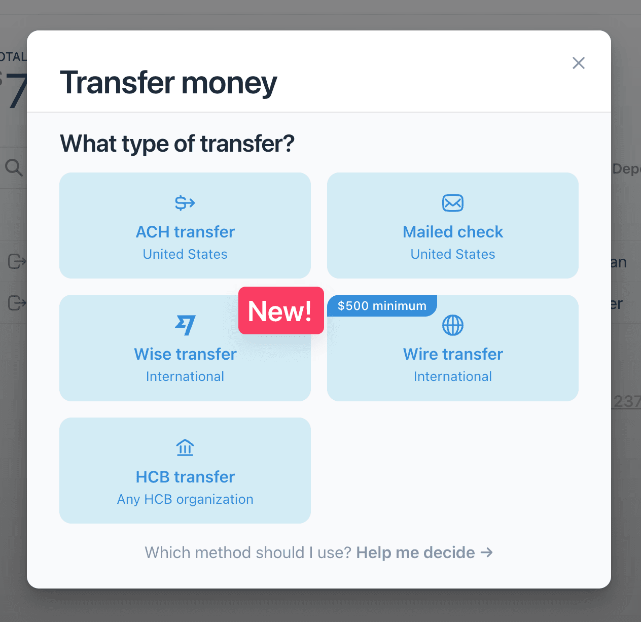 Last year, HCB launched wire transfers, a built-in way to send money internationally from HCB. Today, we're excited to announce a new international payment method: Wise.